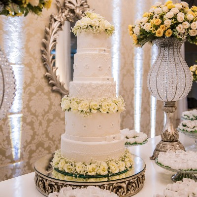To take your presentation up a notch, you can even add decorations such as a small wedding couple figurine at the top of the tall cake, cake sparklers, satin ribbons and silk or edible flowers.