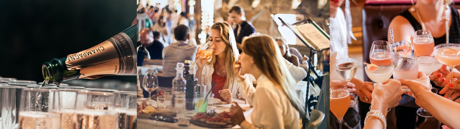 Consider a wedding reception with a champagne toasting, a wedding dinner, and then a dance party where guests may consume alcoholic beverages and some snack food.